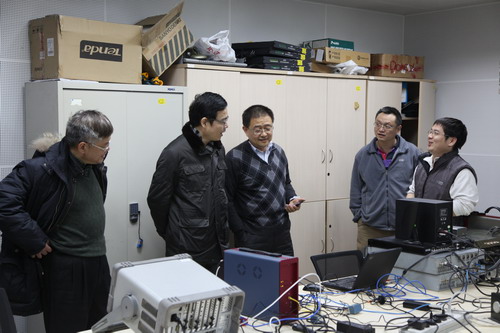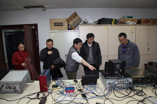 1月14日,总局科技司杨杰副司长、周新权处长等及中央人民广播电台总工钱岳林、副总工朱峰等领导来我院视察我院承担的基于卫星链路的CDR复用数据流传输试验情况。