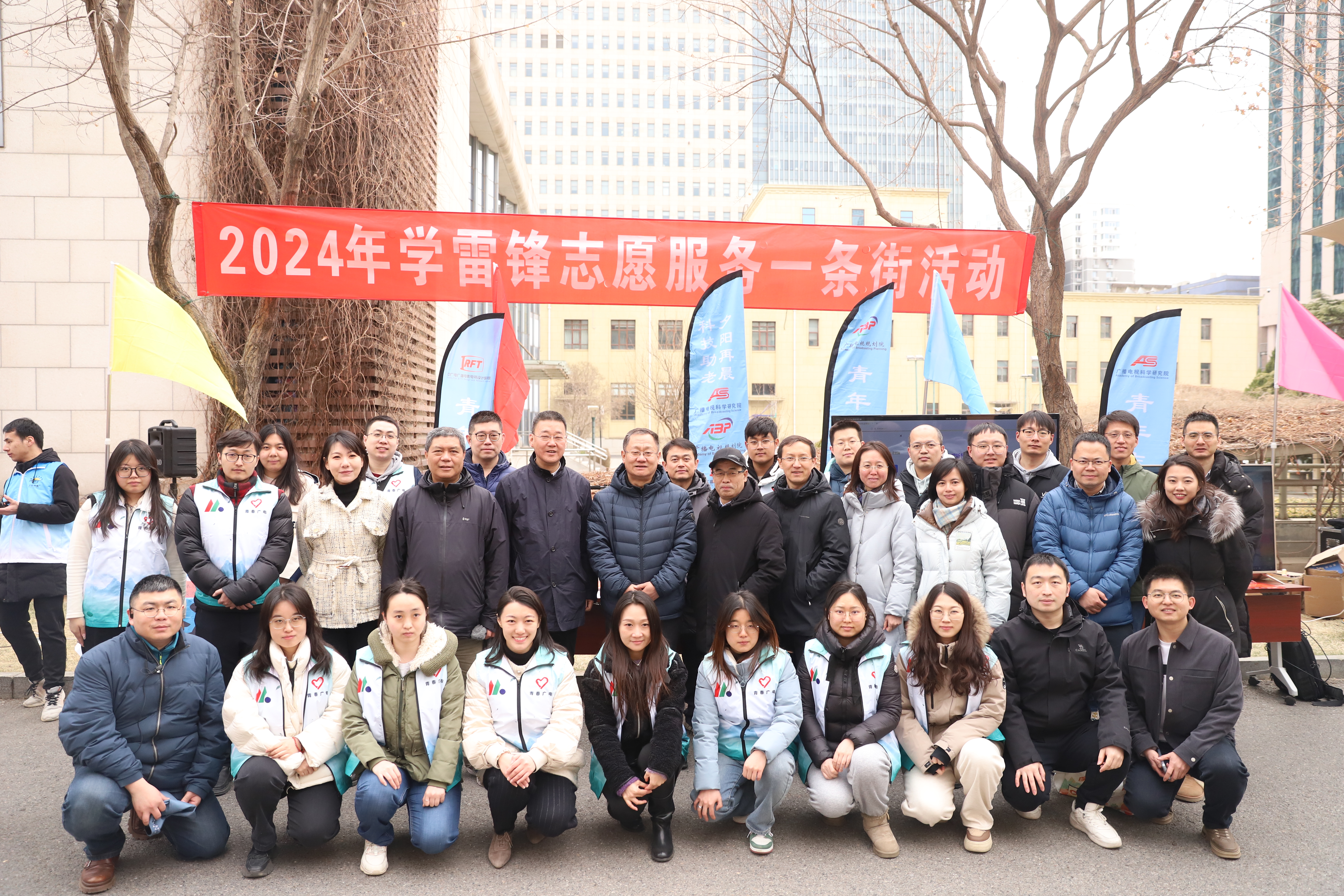 3月4日上午,总局第39届“3·5”学雷锋志愿服务一条街活动在总局大院举行。总局领导曹淑敏、董昕、杨国瑞出席活动并参观广科院展板、志愿服务台,现场观看了在亦庄超高清实验室举办的公益讲座直播课,了解了云制播技术应用,并对活动给予了充分肯定。院领导刘建国、付明栋参加活动并向总局领导汇报了广科院近年来学雷锋志愿服务的特色亮点。